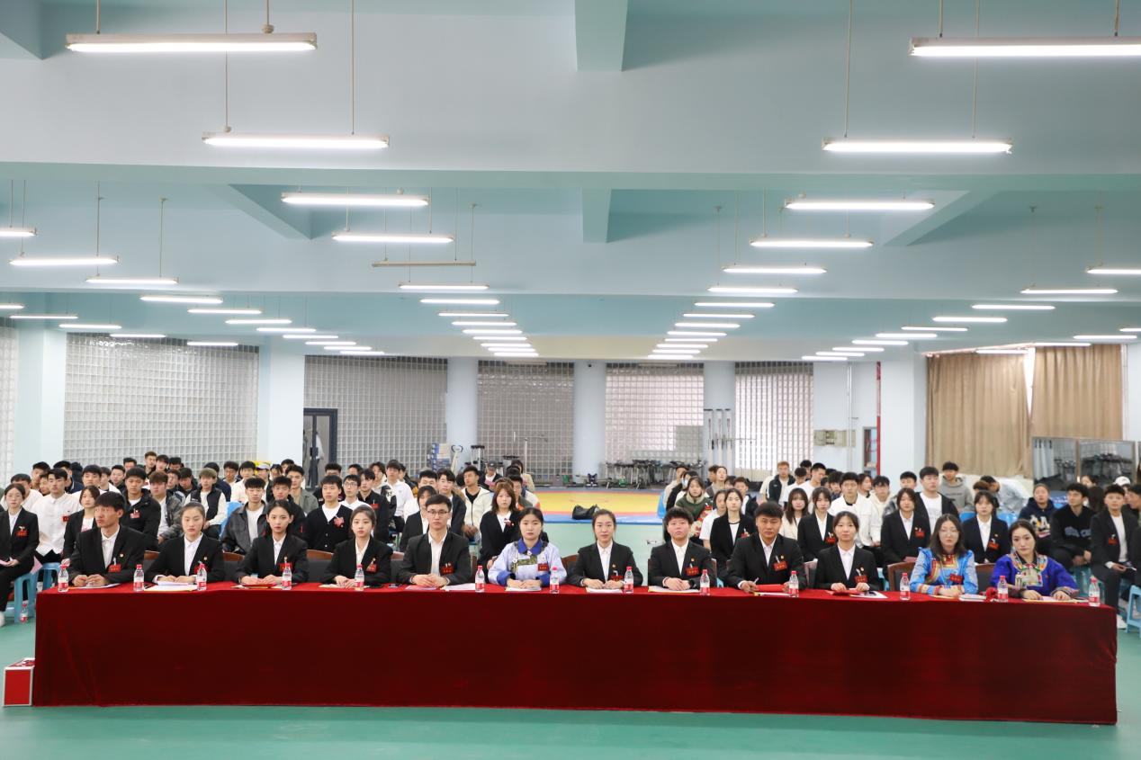 会议由团总支兼职副书记刘竞予主持,今年会官方网站党总支书记温毅刚、院长王文杰教授、副院长李慧君教授、副院长刘忠良副教授、团总支副书记赵郑、专职辅导员呼日查、专职辅导员刘紫薇出席会议并在主席台前排就坐,学院162名同学参加本次会议。