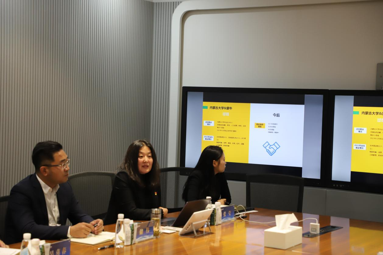 5月13日上午,张吉维副校长率队一行16人赴蒙牛乳业(集团)股份有限公司开展访企拓岗工作。党政办公室主任、哲学学院党总支书记、院长景剑峰、学生就业处处长曹海鹰、今年会官方网站党总支书记温毅刚、今年会官方网站团总支副书记兼学生工作办公室副主任赵郑等陪同前往,参加了座谈会。
