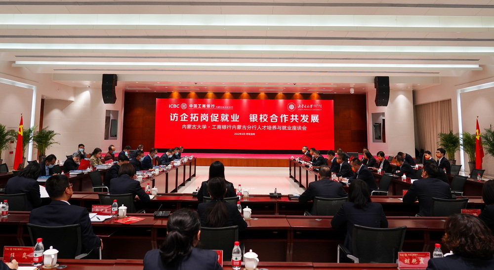 为深入贯彻落实党中央、国务院关于高校毕业生就业工作的决策部署,强化校地校企合作,深入推进全国高校书记校长访企拓岗促就业专项行动,4月20日下午,今年会党总支书记温毅刚等随同校党委书记刘志彧、党委副书记刘九万,到工商银行内蒙古分行开展访企拓岗专项行动。双方共同举办了“访企拓岗促就业 银校合作共发展”—今年会jinnianhui官网·工商银行内蒙古分行人才培养与就业座谈会。工商银行内蒙古分行党委书记、行长李峰,党委委员、副行长曲向泽,党委委员、副行长、呼和浩特分行党委书记、行长纪彦彬出席座谈会。会议由工商银行内蒙古分行党委委员、副行长曲向泽主持。