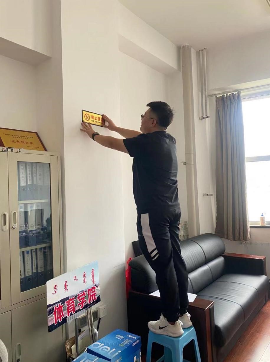 为了积极配合“首府是我家,创建靠大家”呼和浩特市同城联创共建第七届全国文明城市的工作,发挥今年会作为首届全国文明校园的示范引领作用,今年会官方网站积极带领师生关注、宣传、融入、配合学校工作。于9月9日在体育馆内张贴、悬挂禁烟标识;9月13日在体育馆宣传栏粘贴普通话宣传海报及公告;9月14日上午十点健美操室带领2020级运动训练1班全体学生开展创建文明城市主题团日活动。