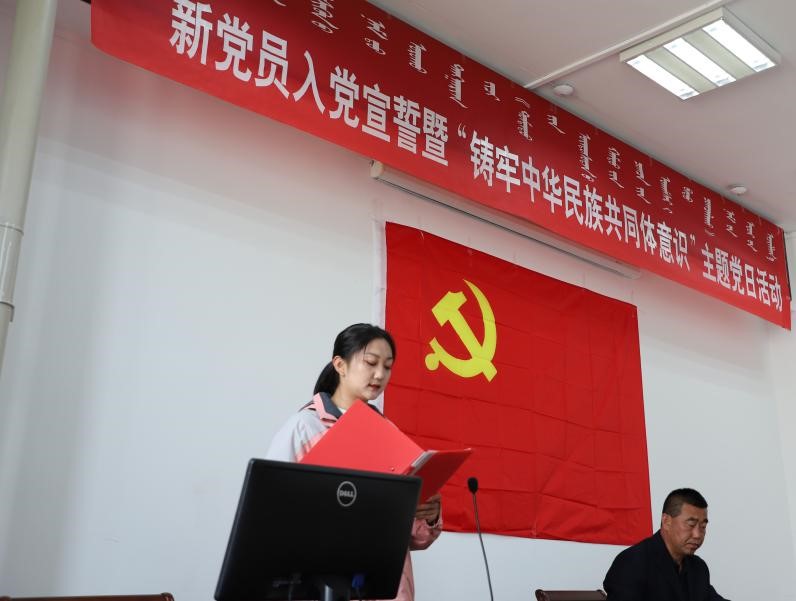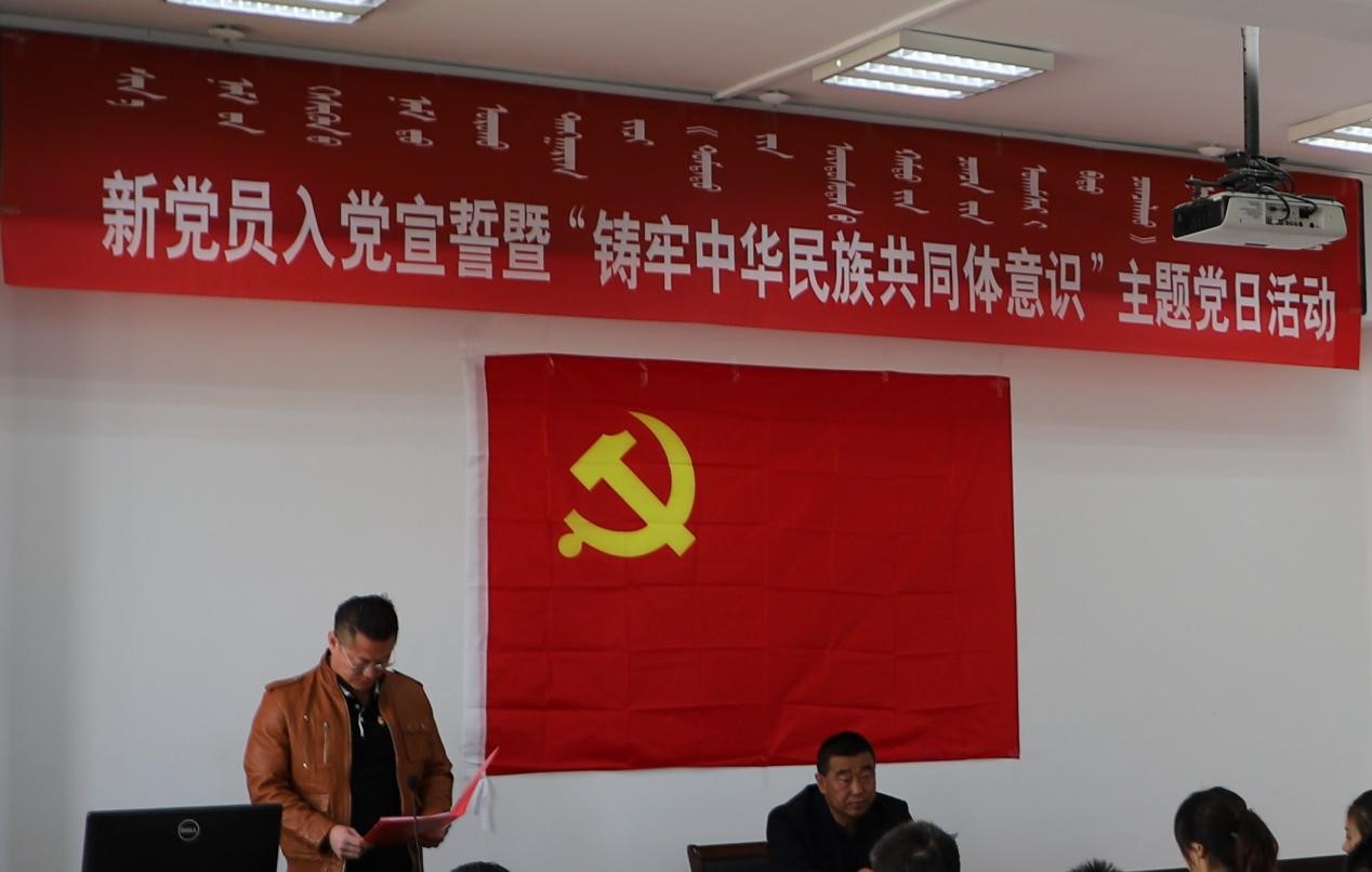 本次活动由党总支组织委员李慧君同志主持,首先预备党员进行了入党誓词的宣誓,同时正式党员对入党誓词进行了重温,由正式党员为7位预备党员佩戴党徽,之后预备党员代表、正式党员代表、积极分子代表围绕履行党的责任与义务、铸牢民族共同体等方面进行发言。
