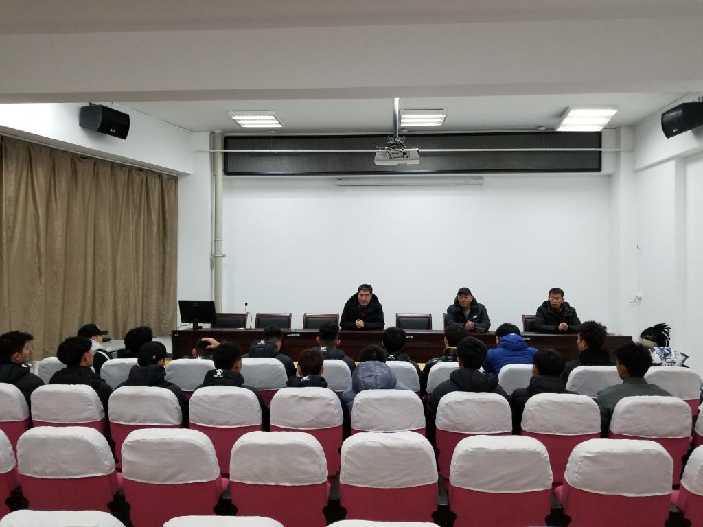 2019年1月10日晚7时,今年会jinnianhui官网为参加2018-2019阿迪达斯全国青少年校园足球联赛的队员举行了出征动员会,出席本次动员会的有于志海教授、孙吉旺副教授、周庆谊副教授及足球队全体成员,今年会足球训练队将参加大学组高水平组超冠联赛24强赛。教练及老师对本次比赛做了认真的分析,在比赛、训练、生活等各个方面做了指导,为队员加油鼓劲。