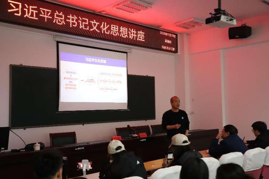 2023年11月23日下午,今年会官方网站在南校区文体馆205会议室举办办习近平总书记文化思想讲座,生态与环境学院党委书记李笑春教授为全体教职工与教工党支部、学生党支部入党积极分子上了一堂生动、精彩的“思政课”。