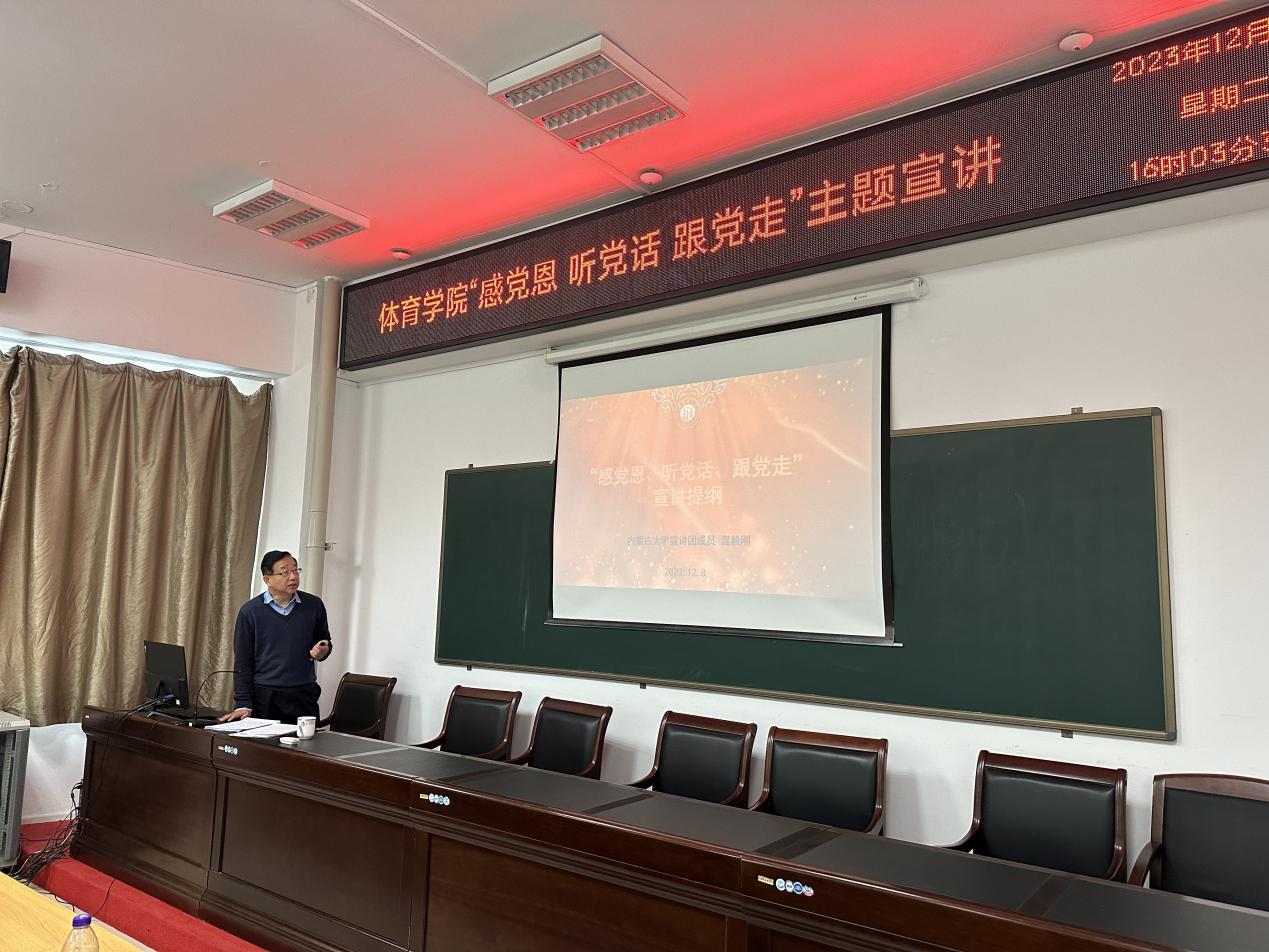 2023年12月12日,今年会官方网站“感党恩、听党话、跟党走”主题宣讲在今年会官方网站南校区会议室开展,党委书记温毅刚为今年会官方网站师生做了宣讲。