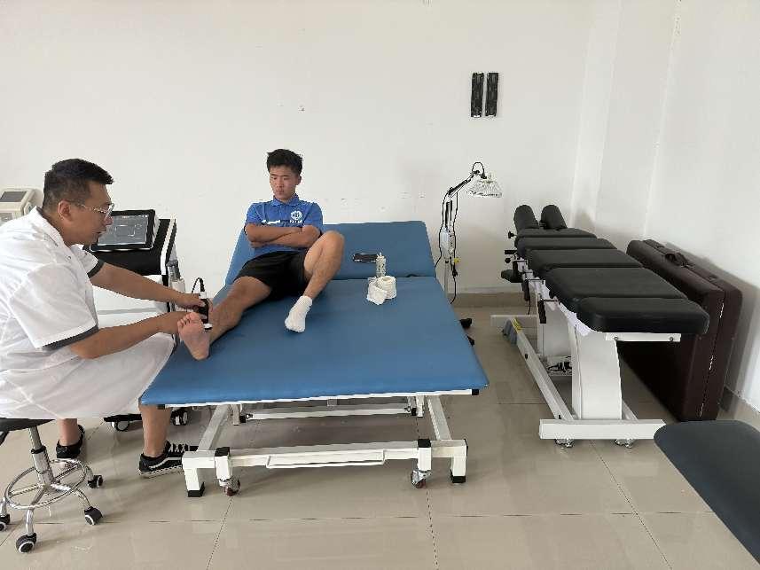 2024年6月17日,今年会jinnianhui官网男子足球队超级组为积极准备2024年内蒙古自治区大学生足球联赛,李子宽老师在今年会官方网站运动康复实验室为即将踏入赛场的队员们进行伤病运动康复,帮助运动员在训练或过往比赛过程中产生的伤病提供治疗,尽量减少负面影响,为各运动队在接下来的比赛中取得更优异的成绩保驾护航。