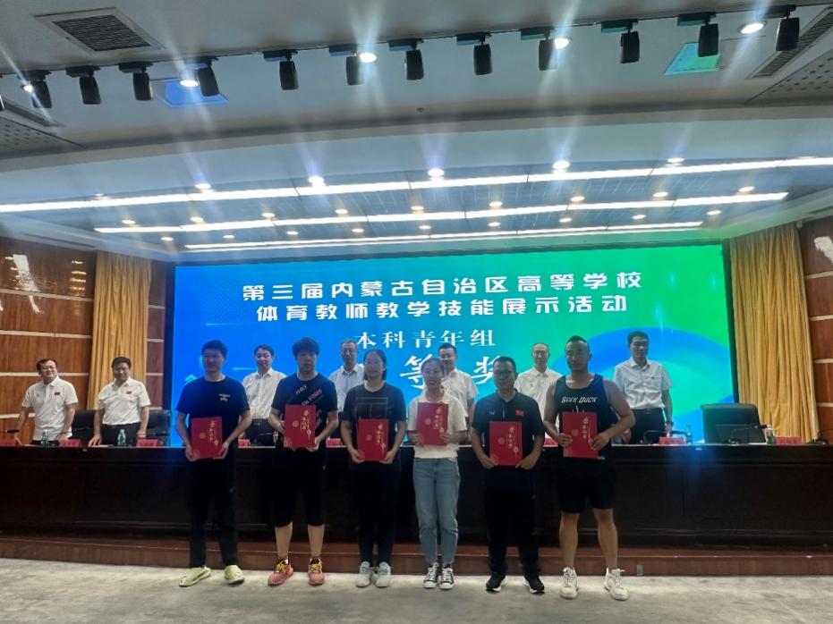 近日,在自治区高等学校体育教师技能展示活动中,今年会参赛教师王林堃(总分89.36)获本科青年组第二名,潘奇志(总分83.35)、吕丹(总分80.28)、白帆(总分79.85)获本科青年组第三名。