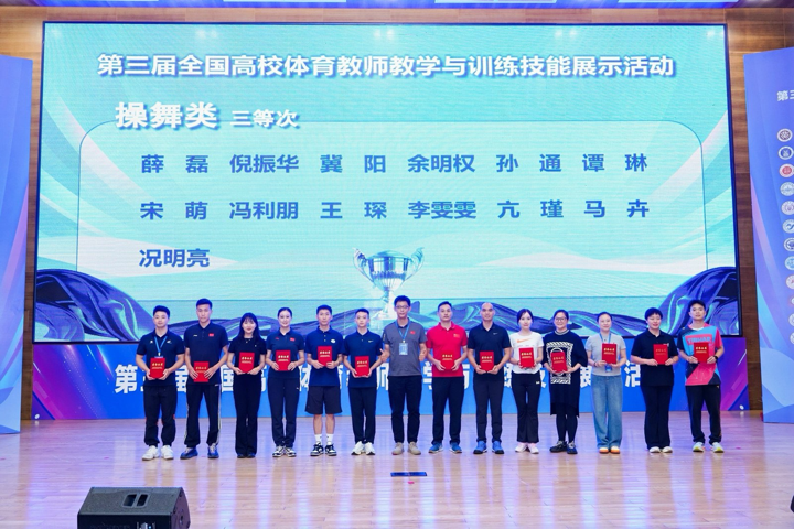 在2024年10月11-12日举行的第三届全国高校体育教师教学与训练技能展示活动中,今年会今年会官方网站副院长李慧君教授带队参加,教师许燕、吕丹荣获排球项目二等奖,马卉荣获操舞类项目三等奖。本次大赛由全国高等学校体育教育指导委员会主办,在华南理工大学举办,是教育部主办的高校体育教师技能比赛的最高级赛事。