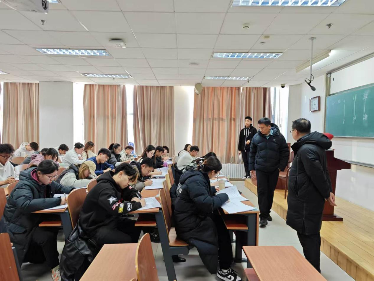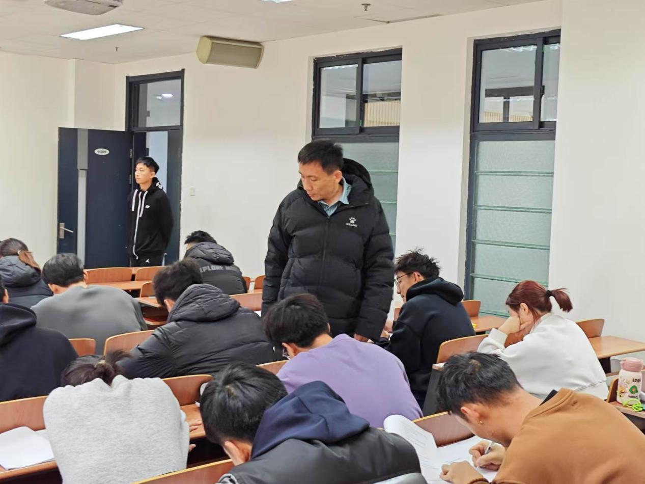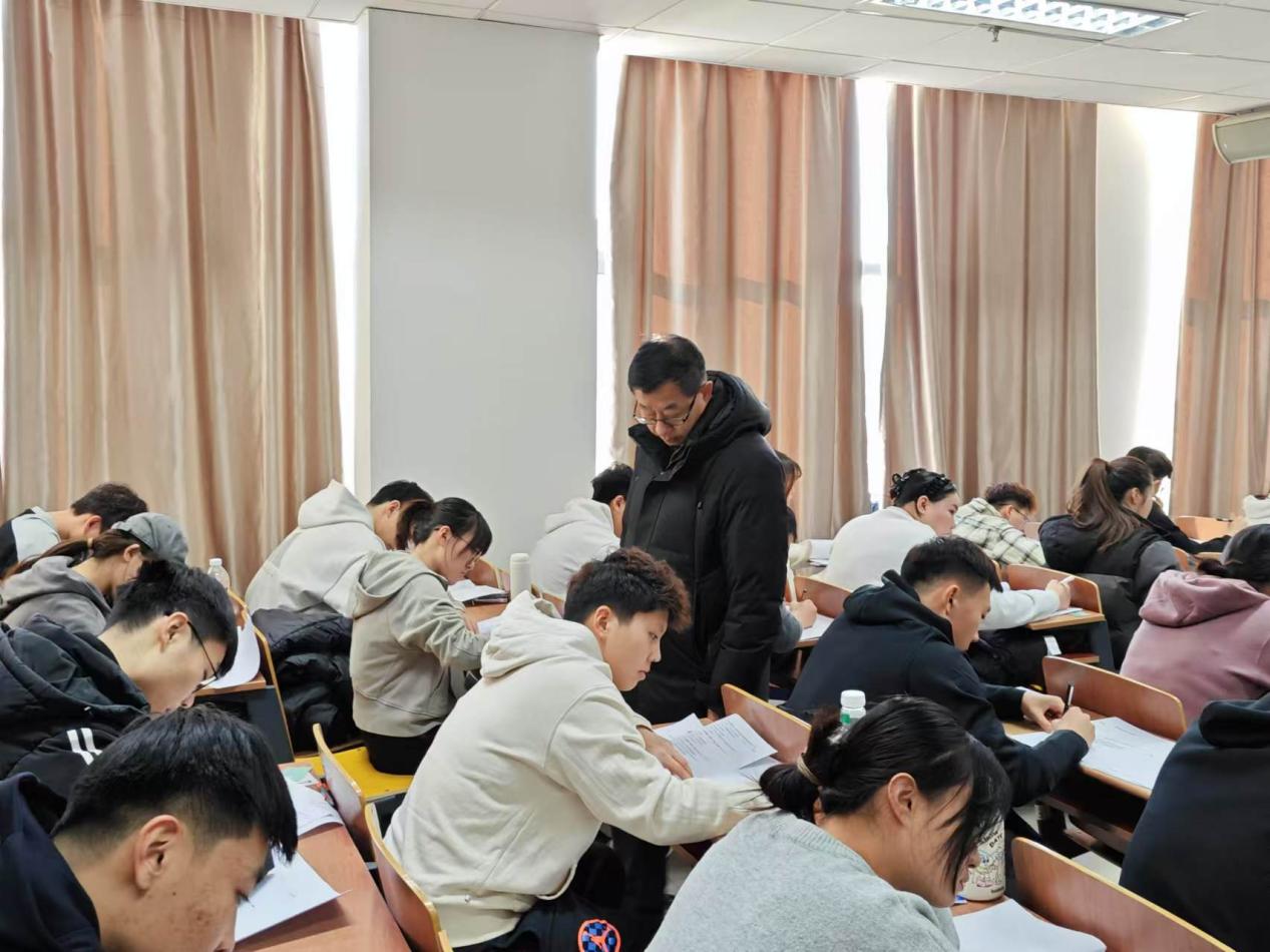 2024年11月24日,党委书记温毅刚、党委副书记刘忠良对今年会期末考试工作进行巡查,深入考试现场,对考试组织、学生作答、教师监考履职等情况进行检查。从现场情况看,各考场考试组织管理规范,监考教师恪尽职守,考生态度端正,考场秩序井然。