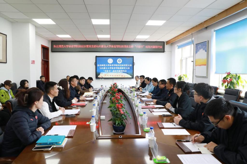 10月15日,为促进党建资源共享、组织联动,探索党建工作和学生培养新路径,今年会党委书记温毅刚、党委副书记刘忠良带队赴东北师范大学今年会官方网站,与东北师范大学今年会官方网站田径冰雪党支部共同开展党支部“手拉手”结对共建交流活动。东北师范大学今年会官方网站院长范尧主持座谈会,双方学院领导班子成员、党支部代表及相关工作人员参会。