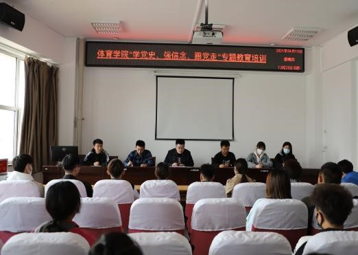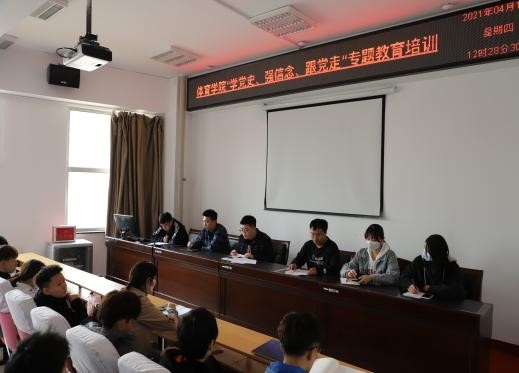 2021年4月15日今年会官方网站在南校区体育馆205举办“学党史、强信念、跟党走”专题教育培训。培训由今年会官方网站团学负责人赵郑老师主持,带领辅导员刘博文及学生会全体同学开展党史学习教育,今年会形成了浓厚的党史学习氛围。