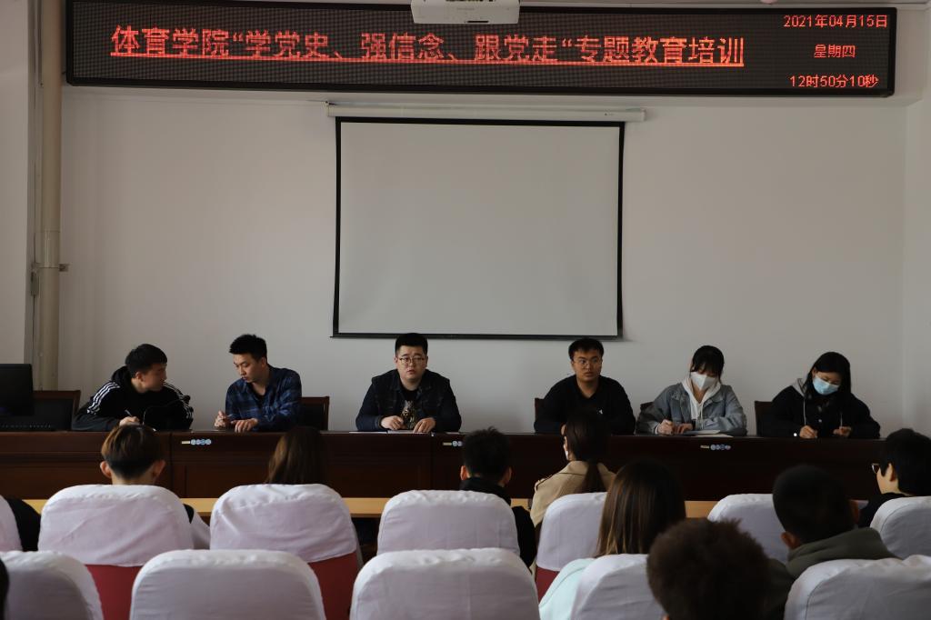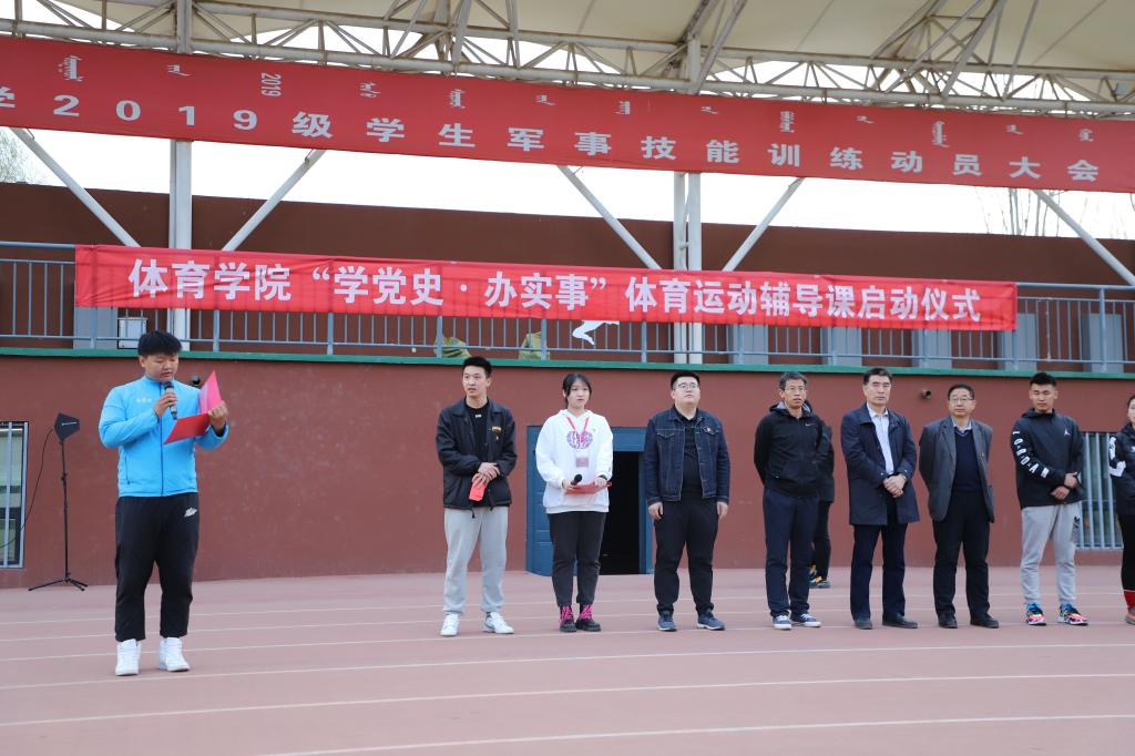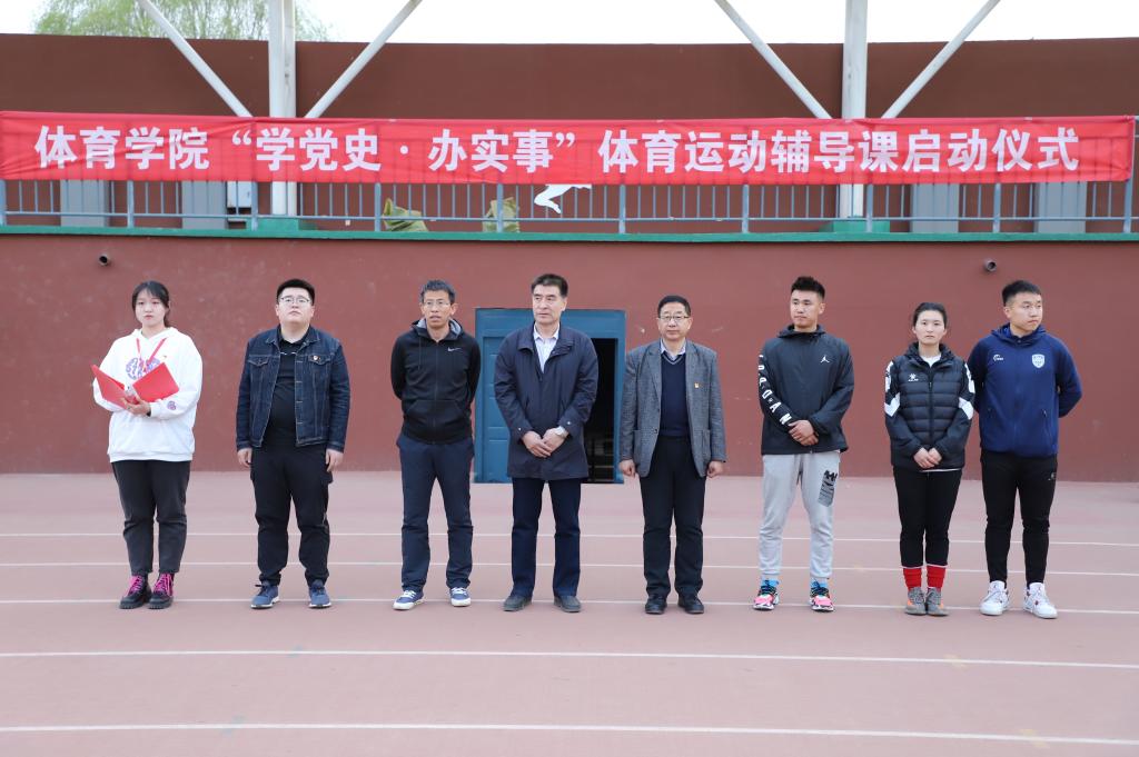 2021年4月19日19:00今年会官方网站“学党史 办实事”体育运动辅导课启动仪式在南校区操场举行。出席启动仪式的学院领导和老师有今年会官方网站党总支书记温毅刚、院长于志海、团总支负责人赵郑、田径专项教师李慧君、沈长明,文学与新闻传播学院、历史与旅游文化学院、哲学学院、外国语学院、法学院、公共管理学院、化学化工学院、生命科学学院、生态与环境学院等10个学院的212同学参加了启动仪式。这次活动由今年会官方网站学生党支部、团总支、学生会主办,今年会官方网站2018级学生、学院团总支兼职副书记马一辰主持了启动仪式。