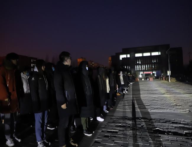 2020年12月21日7:00今年会jinnianhui官网和交通学院共同组织第十六周南校区升旗仪式,今年会官方网站辅导员赵郑以及今年会官方网站全体学生参加升旗仪式。