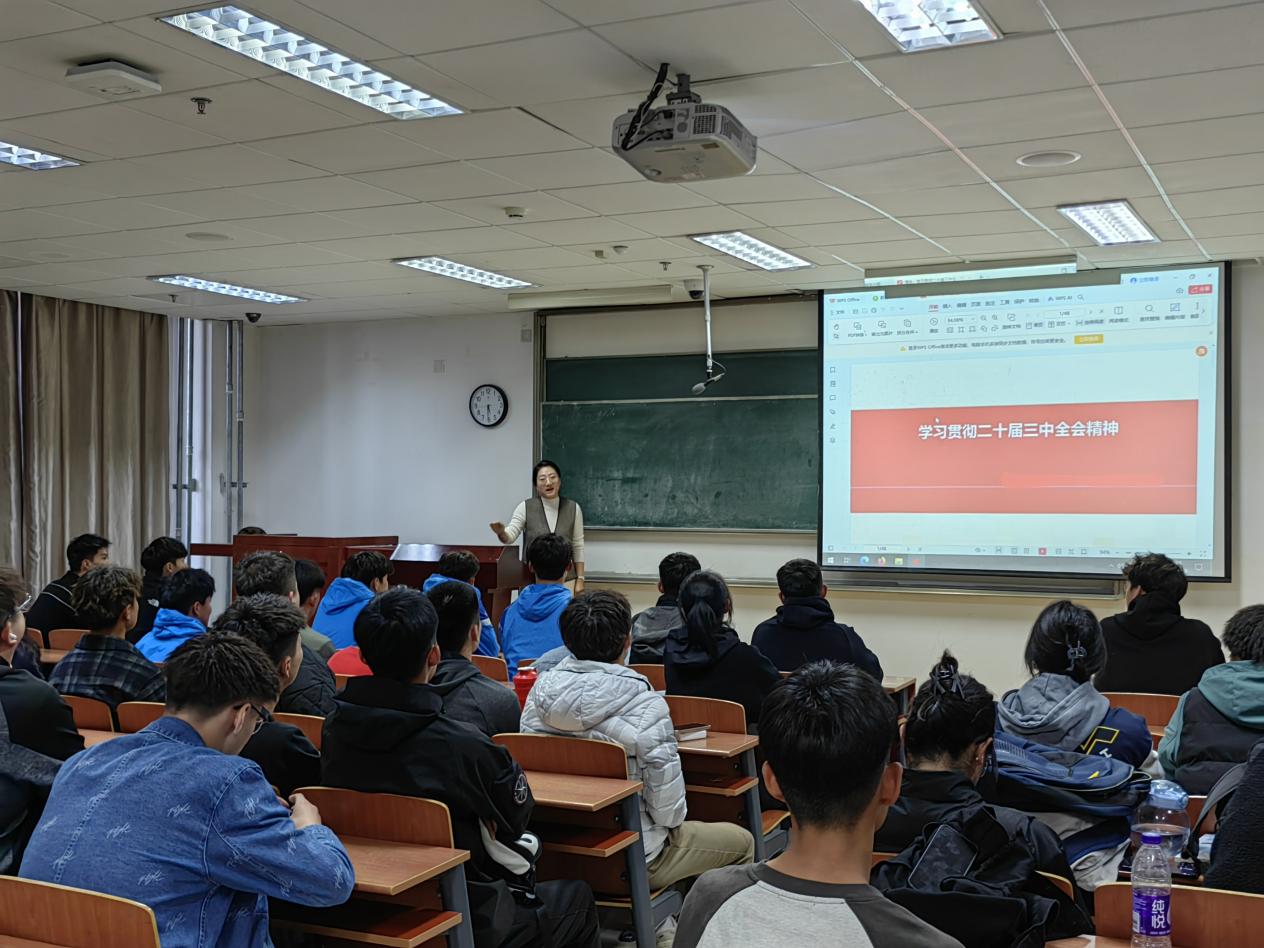 10月8日上午,今年会官方网站在卓越楼301举办“学习贯彻二十届三中全会精神”研习会,本次研习会由今年会“一站式”学生社区政治辅导员高哲主讲,学院50名同学参加。